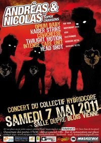 – Concert HYBRIDCORE avec COWCHEESE, ANDREAS & NICOLAS, OPIUM BABY, TWILIGHT MOTION, KAISER STRIKE, INTENSE CARE UNIT, HEAD SHOT a Blois Vienne Salle Dupré le 7 mai.