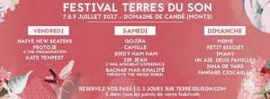 Le gros festival de la région tourangelle (40000 festivaliers sur les 3 jours en 2016), au Château de Monts, avec un Village eco : gratuit, plein d’animations ludiques, citoyenne, une monnaie locale et quelques concerts et un champs principal – la prairie – (payant) et ses 4 scènes dont voici la programmation …
