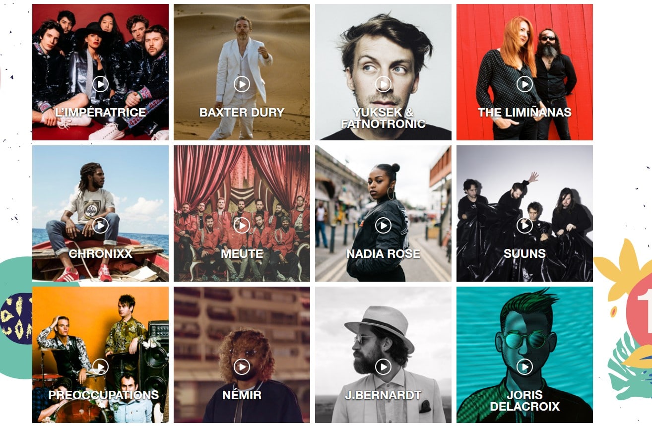 Lomepal, Nemir, Her, Juliette Armanet, Thé Vanille, L’Impératrice, The Liminanas, Joris Delacroix, Yuksek & Fatnotronic, 2manydjs, Chronixx, Synapz, Lehmanns Brothers, Tiloun, Thé Vanille, Ctrl-Z, L’Impératrice, La Mverte, Caje, Birdstone, Dissident, First Draft, Le Carré, Baxter Dury, Ghetto Kumbé, Revivor, Jim Ballon, Scratchophone Orchestra, Irène Dresel