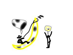 C’est la version Pomme, Pêche et Banane… Il y a eu celle du visage bariolé, à la mobylette, le gros n’avion, de sumac de virginie, de robot à bras, de fumeur d’allumette, de boite d’allumette, le tourne-disque & la cassette, l’ampoule humaine inversée …