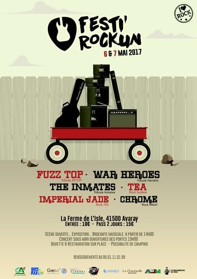 read moreFestival RockUn #4 Ce we, le 6 et 7 mai à Avaray(41), en 2 phases autour du vote (n’oubliez pas), aura lieu la 4ème session du Festival Rockun : Samedi 6 mai on commence par une brocante musicale puis par une série de concerts avec : Chrome : Du Rock Metal fb Red Beans & […]
