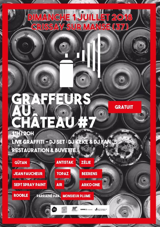 read moreGraff au Chateau #7 Ce dimanche 1er Juillet, à Crissay sur Manse(37) – petit village qui résiste encore à l’urbanisation, aura lieu la 7ème édition de Graff au Chateau, animation Graff dans le village, organisé par Mr Plume et par le comité d’animation de Crissay La journée sera ponctuée de musique assénés par DJ Kéké […]
