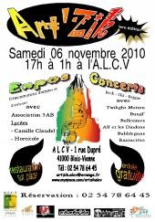 read moreLe 1er Festival Art’Zik organisé par ALCV à la salle Dupré à Blois vienne, a eu lieu le 6 Novembre 2010 regroupant les groupes suivants : Twilight Motion Bunjil Bulletimes Alf et les dindons Bubbleguns Raztacrete Le but de l’association est de de valoriser et faire connaître les jeunes talents de la région centre ! […]