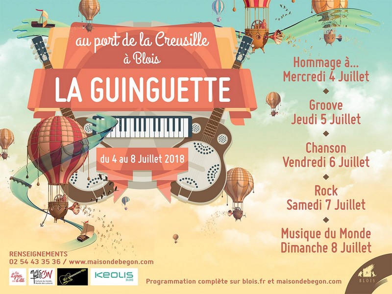 read moreLa GUINGUETTE de Blois La Guinguette, organisé par la Maison de Bégon, c’est 5 soirées musicales à thème (« Hommage à… », « Groove », « Rock », « Chanson » et « Musique du Monde »), gratuites de 18h30 à 1h avec un espace bar-restauration, au port de Blois – la Creusille – avec une belle vue sur Blois et la ville avec un […]