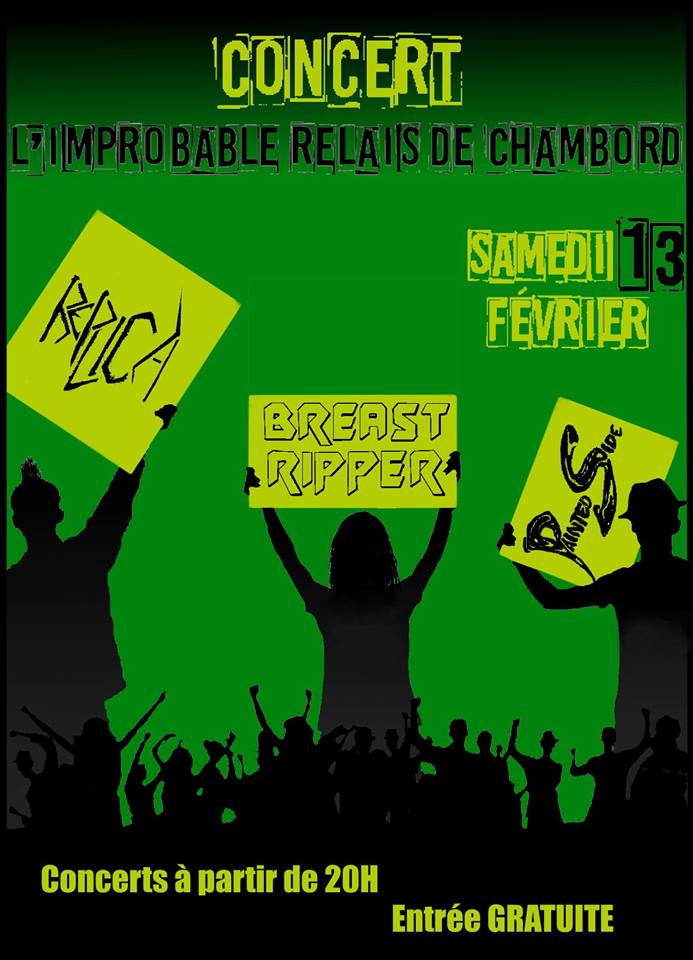 read moreHeavy Metal Night au relais improbable Une bonne soirée Métal, à Huisseau sur Cosson, organisé par L’Asso Intense Prod de Blois avec des groupes locaux de hard rock : Breast Ripper + Replica + Painted Side Liens : Replica Painted Side Breast Ripper